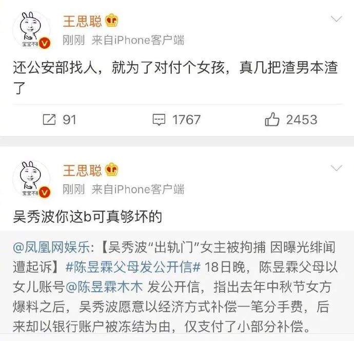 網友們為吳秀波起了個“老毒物”的外號,王思聰也發微博説:吳秀波你真夠壞的。