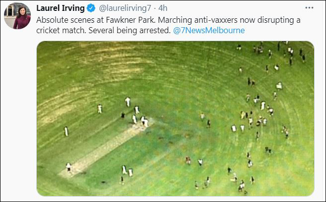 墨爾本的示威隊伍橫穿比賽場地 圖源社交媒體