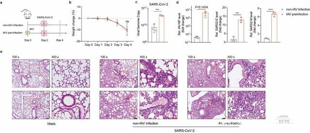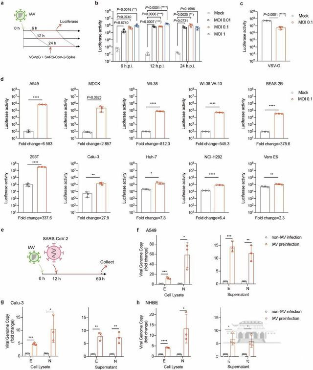 流感病毒預先感染在細胞模型上顯著促進新冠假病毒及活病毒的感染能力。據武漢大學官網對該項研究的報道介紹稱,研究團隊首先用新冠假病毒和活病毒分別與流感病毒(H1N1型、H3N2型、乙型流感病毒)共感染,發現預先感染流感病毒會顯著促進新冠病毒的入侵和複製,這一現象在多種人呼吸道細胞和人肺組織細胞中都存在,還能使得本來不感染新冠病毒的細胞變成完全易感的細胞,提示兩種病毒共感染可能導致患者體內更多細胞和組織受到病毒攻擊。