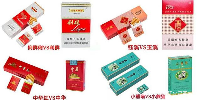 監測中心表示,“中華紅”“俐羣俐”“鈺溪”“小熊喵”等品牌利用同音字、字體縮放、相似字形等手段與知名香煙品牌進行捆綁,加之產品包裝外觀與原版高度相似,極易使人產生混淆,對消費者造成誤導。