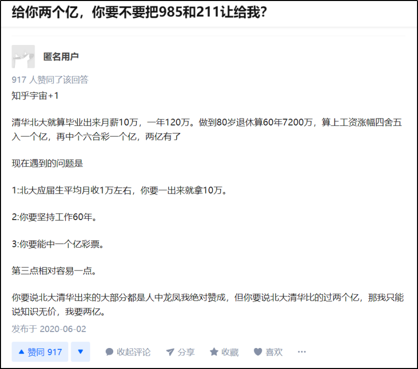 你得研究研究為什麼有人給你兩個億,而你只需要將985和211文憑拱手相讓?