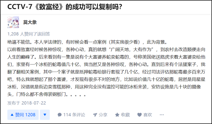 畢竟,任何時代的機會總是留給有準備的人的,畢竟《致富經》還在央視上播放着。