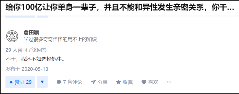 “給你100億讓你單身一輩子,並且不能和異性發生親密關係,你幹嗎?”