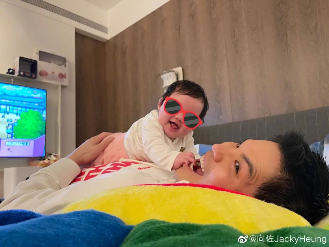 父女倆在房間玩耍的照片尤其温馨。小奶皇趴在向佐身上,頑皮地伸手摳住爸爸的牙,兩人都笑得合不攏嘴。