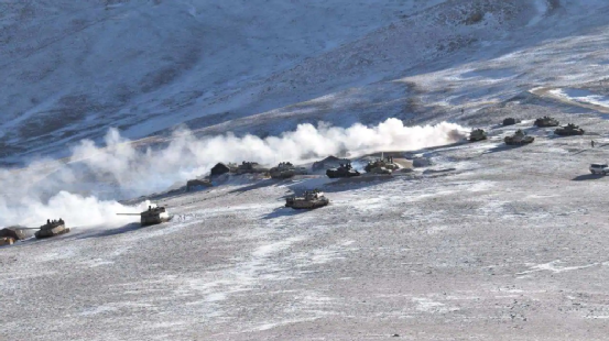 只要放大圖片,並結合我方軍事報道就不難發現,我軍最先進的裝甲力量已經集結在了對峙一線。