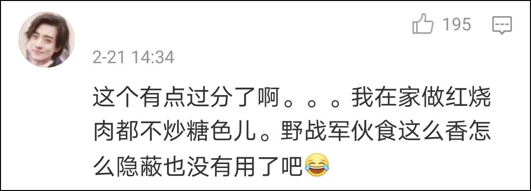 有網友納悶,把野外伙食做得如此誘人,有沒有因此暴露位置的可能性?