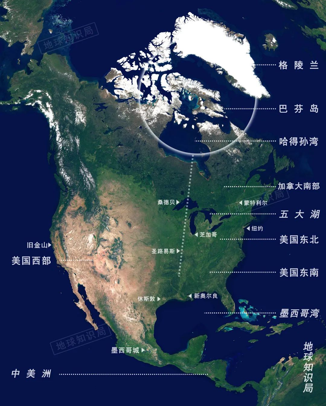 西半球的北極冷渦中心巴芬島位於加拿大東北部。這裏與美國之間僅有哈得孫灣、哈得孫沿岸平原與五大湖相隔,地勢一馬平川,並不能有效阻礙寒潮南下。