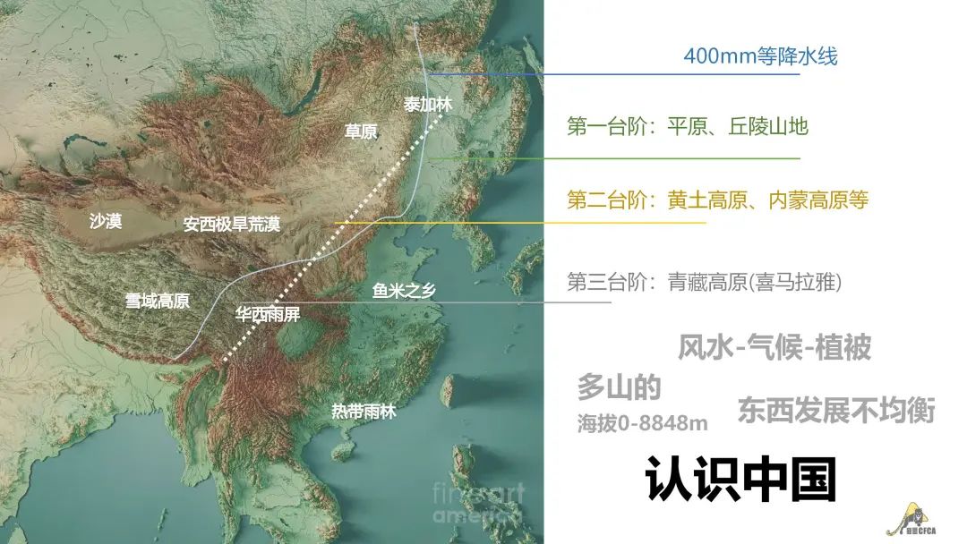 因此從整個中國的地理氣候尺度來看,三級階梯、400毫米等降水量線、以及人口的分佈特點相互疊加,形成了今天中國的生態格局。