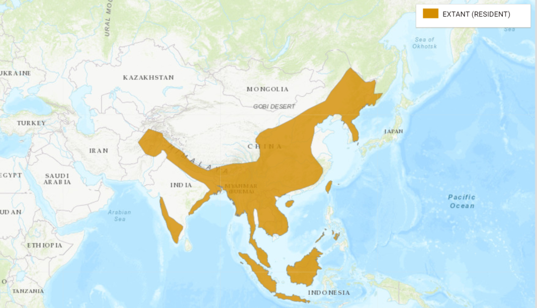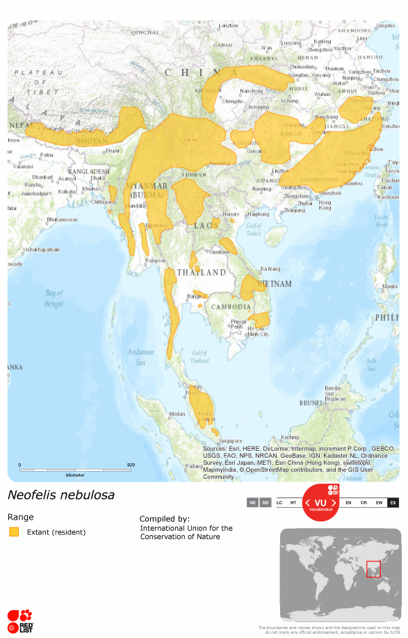 先來看IUCN對雲豹分佈的推測,我們會看到中國佔據了非常大的區域。
