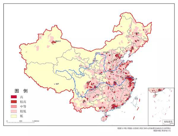 比如第一張圖,我們可以看到人口的密度,人主要集中在東部。而胡煥庸線以西,還有大片的人口相對少一些的地方。