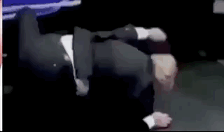 自從1991年開始,特朗普就成為了WWE的主要投資人,並且多次客串比賽,依靠鈔能力將肌肉猛男們打得抱頭鼠竄,在體育和娛樂圈中吸粉無數。WWE老闆文斯·麥可曼,也就是上圖中被“暴打”的可憐傢伙,亦在好基友的兩次總統競選中傾囊相助,並且至今依然不離不棄。