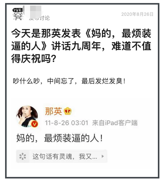 所以,當年輕人們在轉發那英微博的時候,他們在轉發什麼?