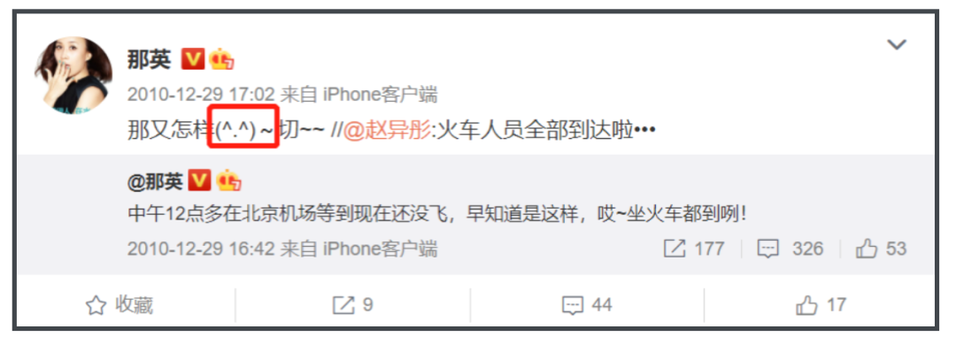 除了感嘆號,那英其實也擅長顏文字,你想象中可愛該有的樣子,那姐都有。