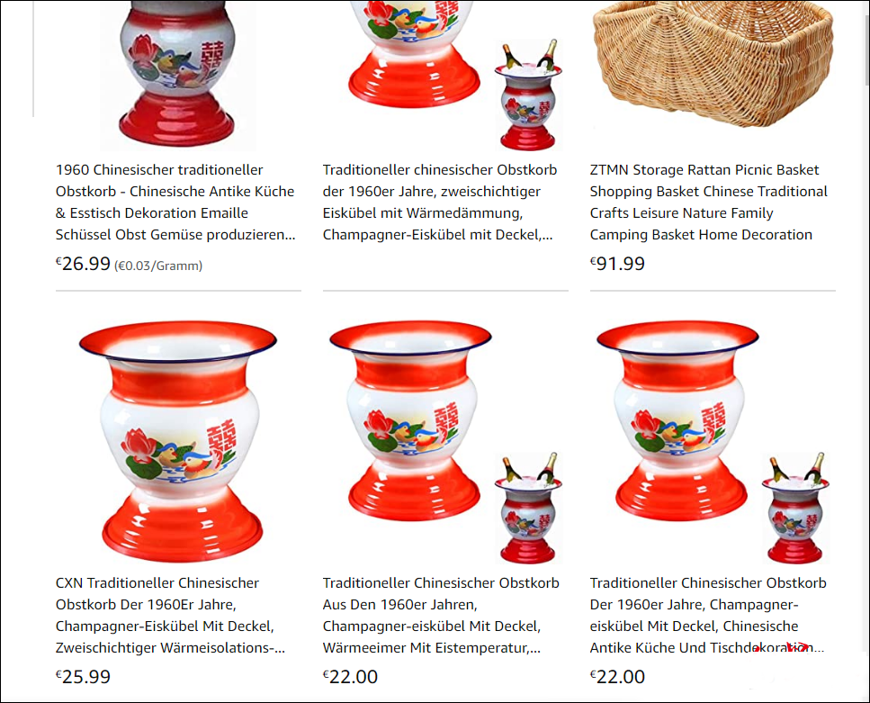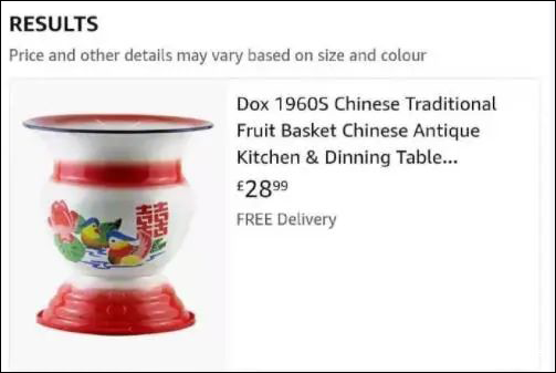 商家是這麼介紹中國痰盂的:“中國傳統水果籃”、“中國古董廚具”、“婚禮裝飾品”、“香檳冰桶”“中國上世紀60年代古董”……