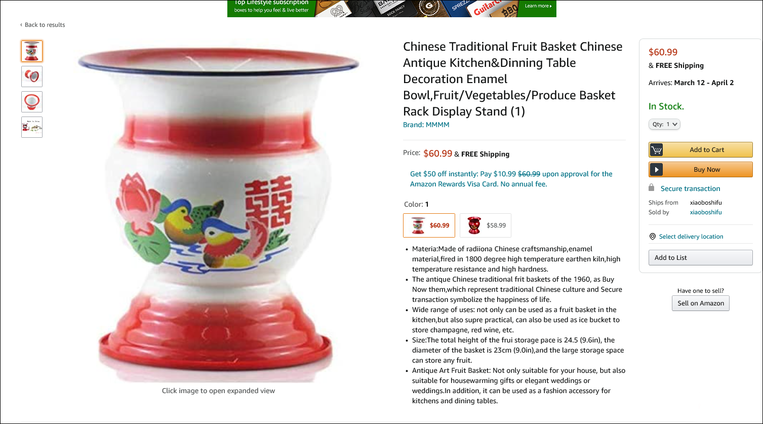 標價近400元,介紹稱適合放置在廚房,亞馬遜痰盂水果籃已下架_風聞