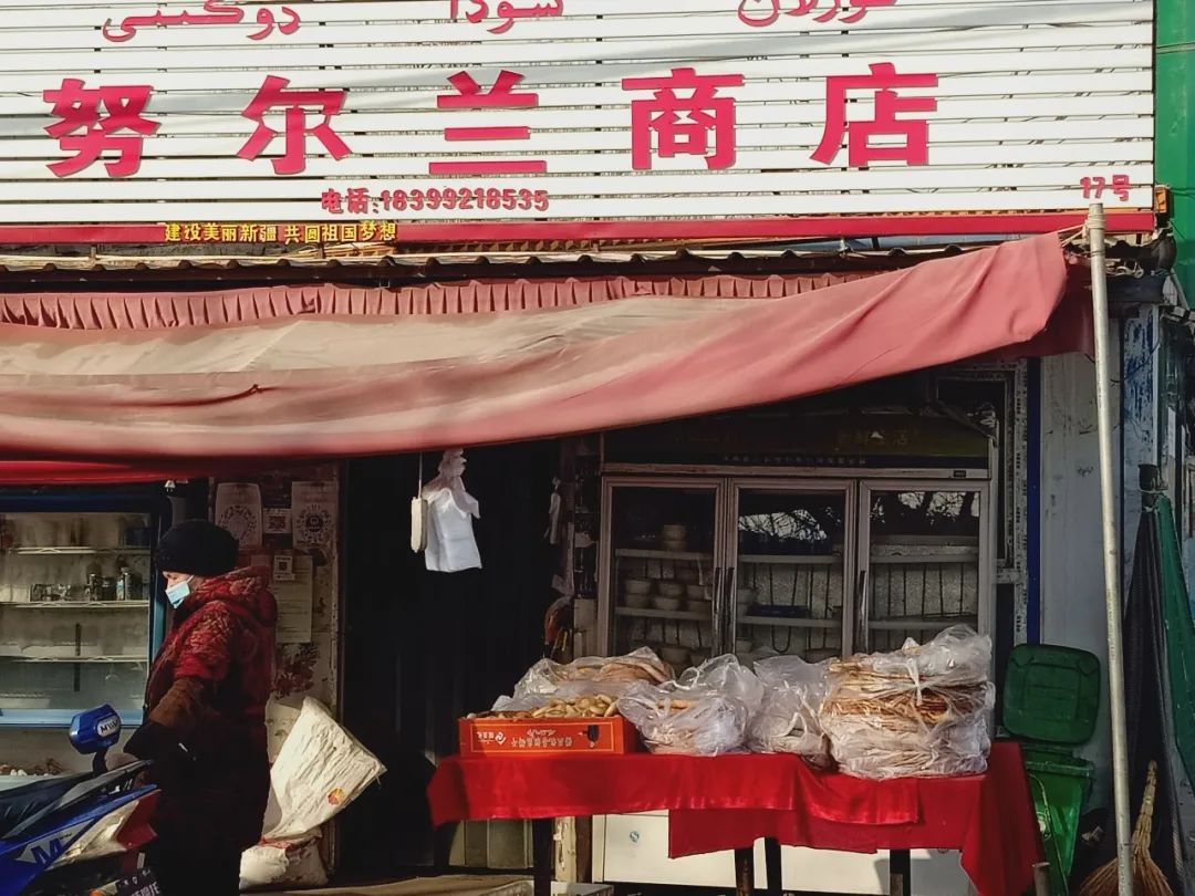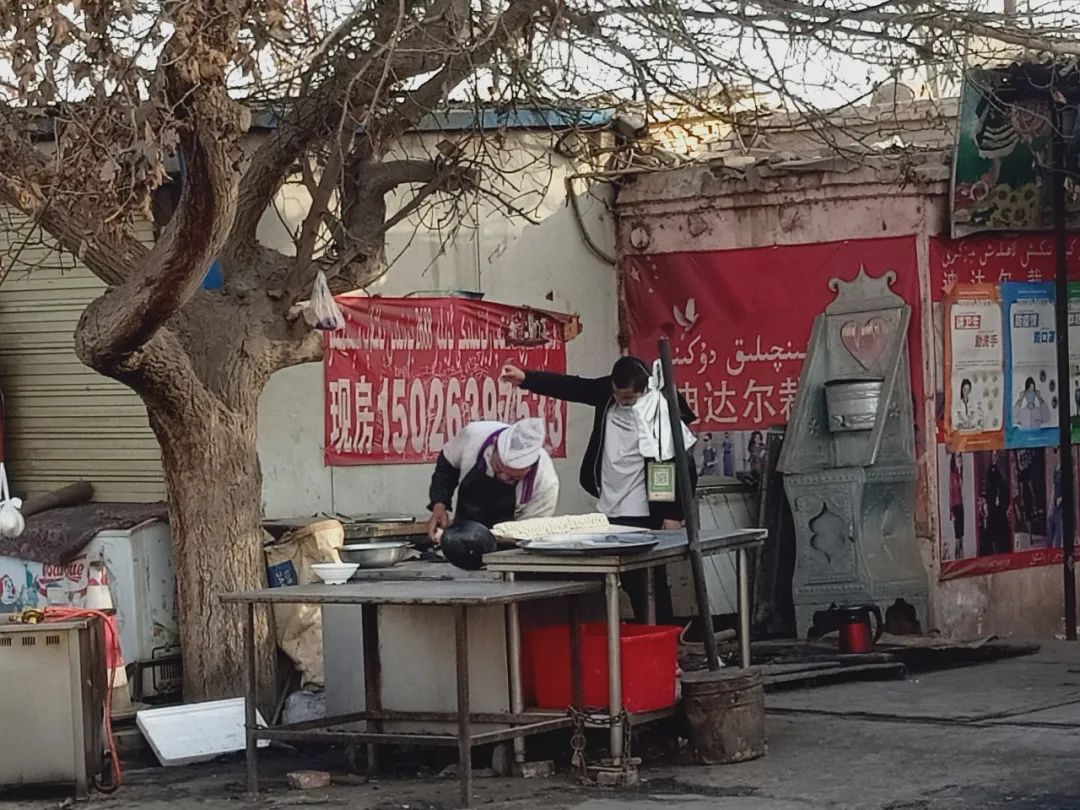 你看啊,對面買買提大叔的羊肉攤位早已支起來了。