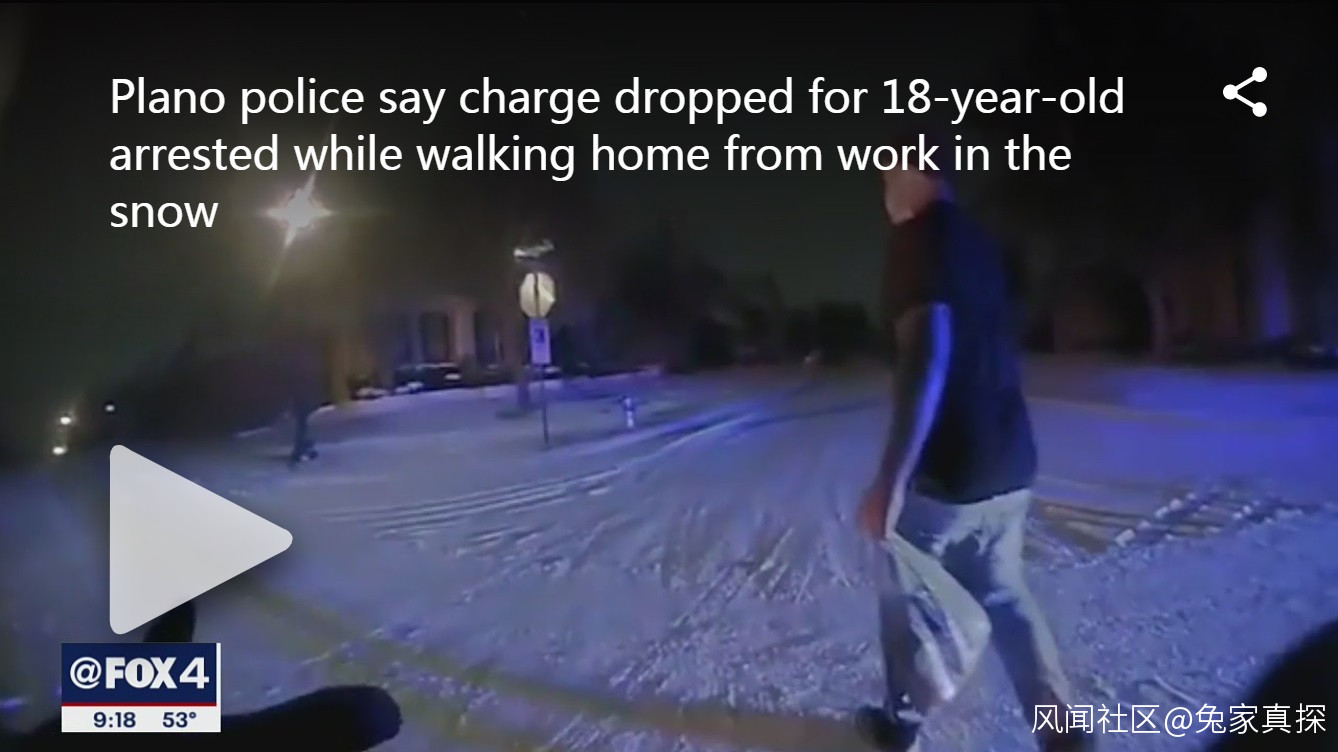 在2月16日星期二的冬季天氣期間,在沃爾瑪下班回家的路上,這名18歲的男孩被Plano PD人員攔住。