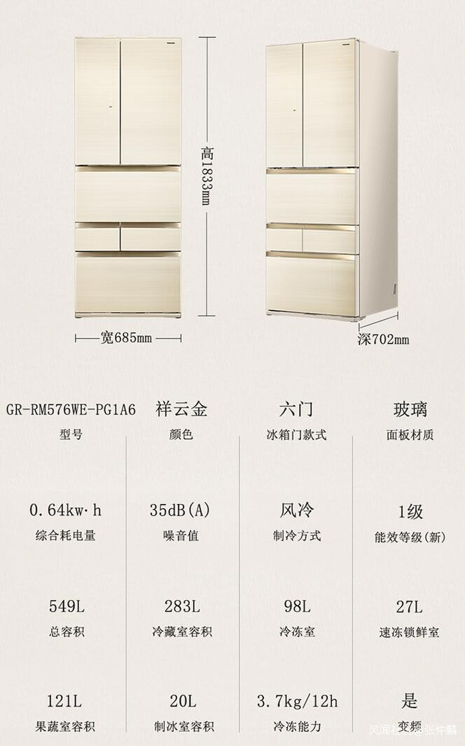 以685mm*703mm的尺寸達到549L容量,在之前看的冰箱中,906mm*736mm的巨無霸也就568L的容量。