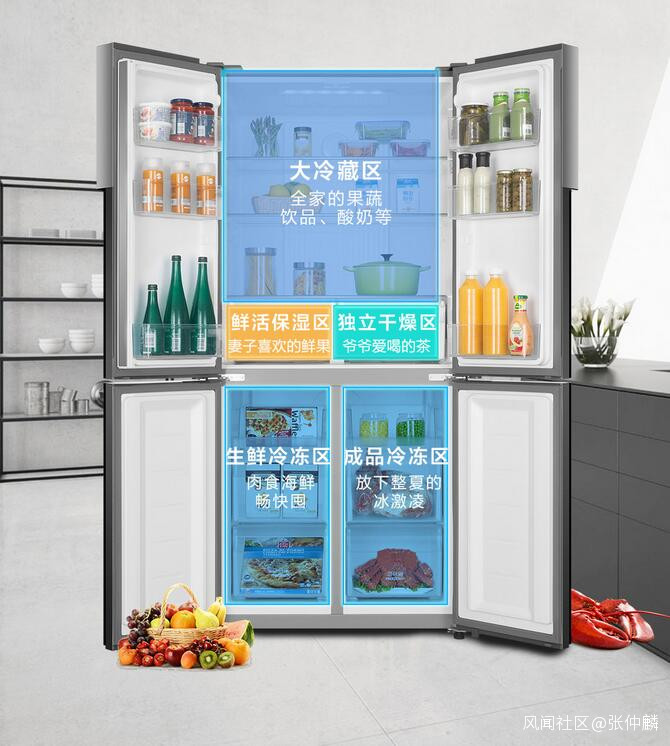 這種四開門冰箱冷凍區中間被隔斷了,導致冷凍區每個區很窄,一樣否決掉