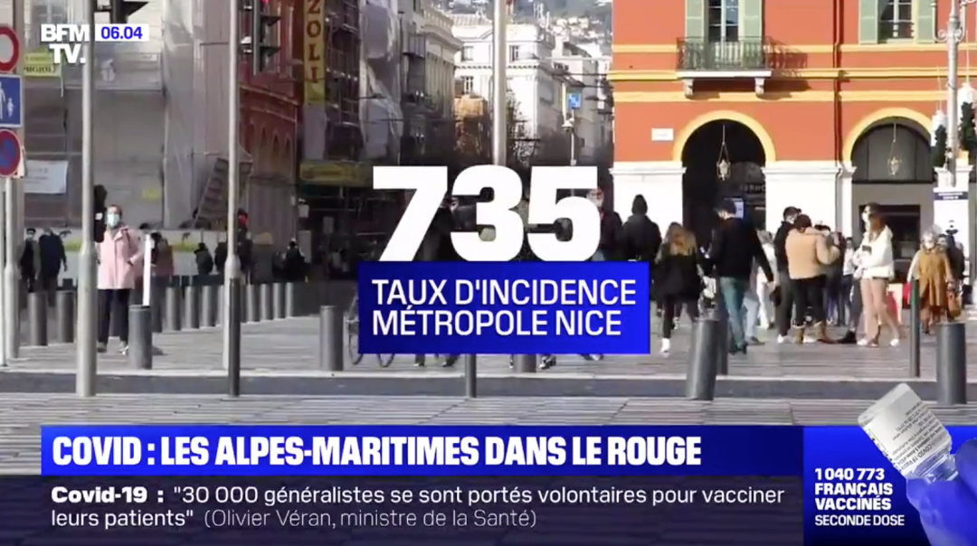 要知道,尼斯才每10萬居民中735例確診,這都還超過全法國的平均水平(190/10萬)足足四倍了。