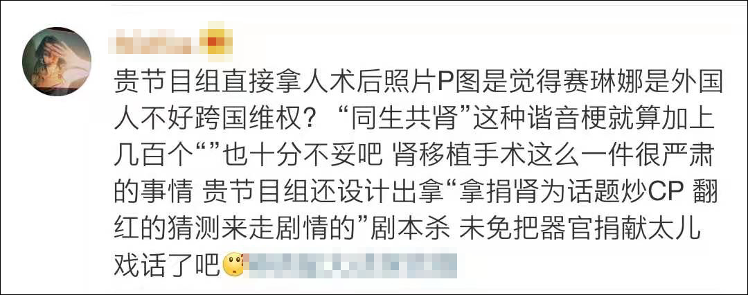 “腎移植手術這麼嚴肅的事情,卻被拿來玩梗炒CP,太兒戲了吧。”