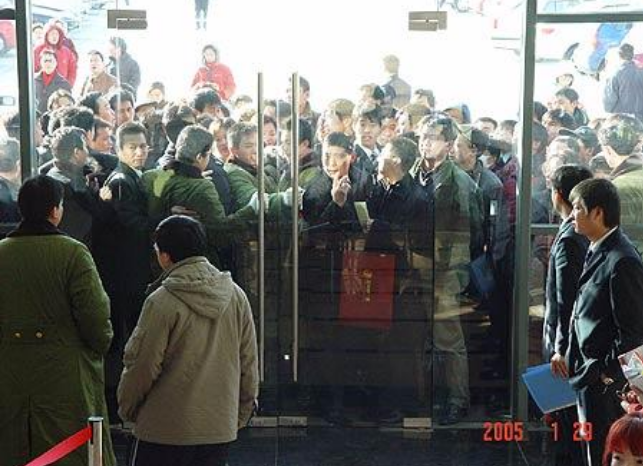 在南京,10多萬市民湧入國美門店,開門五分鐘後玻璃大門被擠破,據説被擠丟的鞋子裝了好幾個大紙箱。