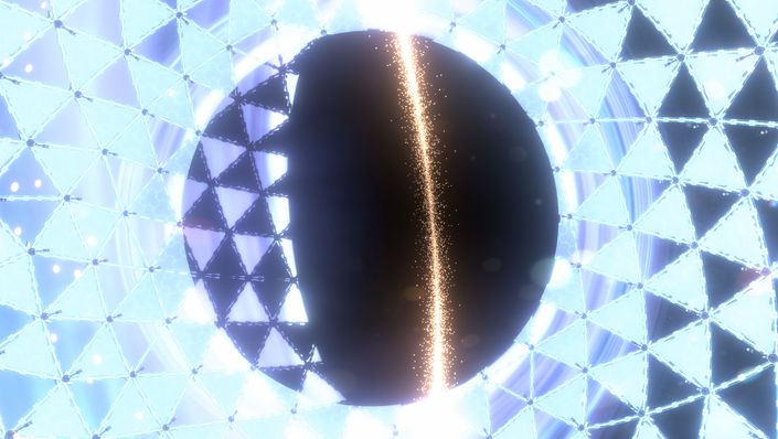 可以看到,當玩家操控的工業機甲接近事件視界時,戴森球的形狀也被時空扭曲,製作組在這裏的編程處理應該還是挺符合實際物理定律的。