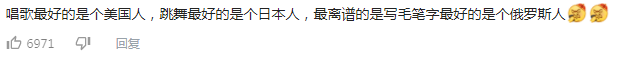 如果説幾十名選手全部是中國人,對網友的刺激性可能還沒這麼大,但是這裏面偏偏有一個俄羅斯選手大衞,而且這個俄羅斯選手還偏偏是毛筆字寫的最好的那一個,對於很多中國網友來説,這簡直是攻擊力不大,但是侮辱性極強。