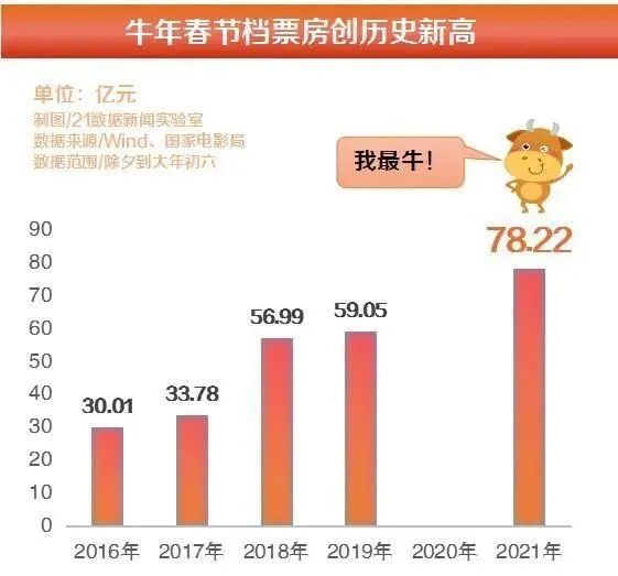 據國家電影局數據,2月11日除夕到2月17日正月初六春節檔,全國電影票房達78.22億元,總觀影人次1.6億,累計場次285.8萬,再創春節檔歷史新高,同時創造了全球單一市場單日票房、全球單一市場週末票房等多項世界紀錄。