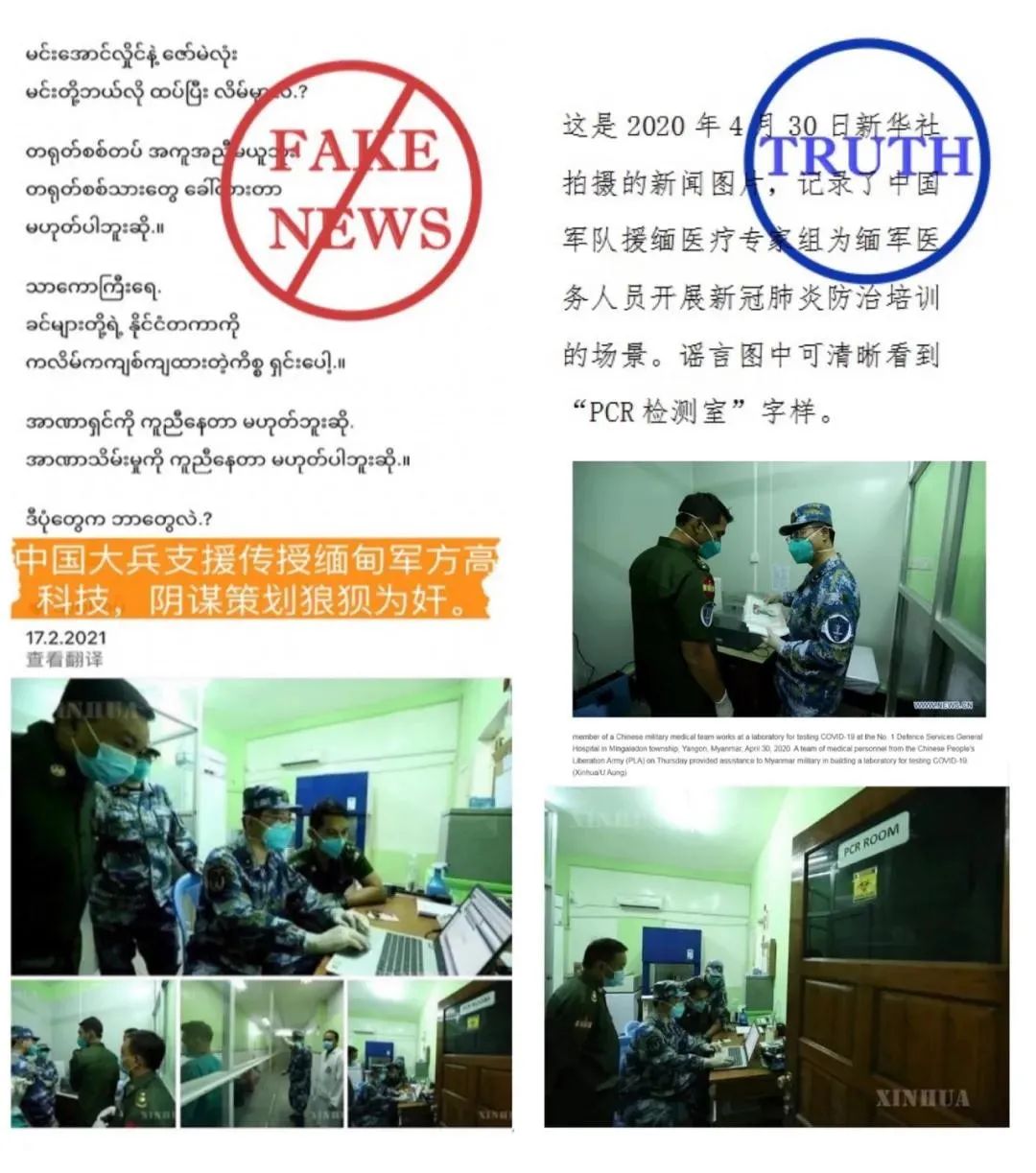 12日,這則謠言又被進行再加工,改成中國“向緬甸提供網絡防火牆技術,用於阻止民眾使用部分社交媒體”。