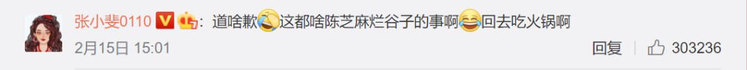 倒是張小斐的回覆很拉好感,表示是陳芝麻爛穀子的事情有啥道歉的,回去火鍋約起來。