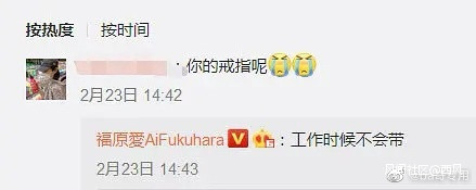 還有人發現,福原愛手上的婚戒也不見蹤影,雖然福原愛曾回覆“工作時候不會帶”,但此説法仍未打消大家的疑慮。