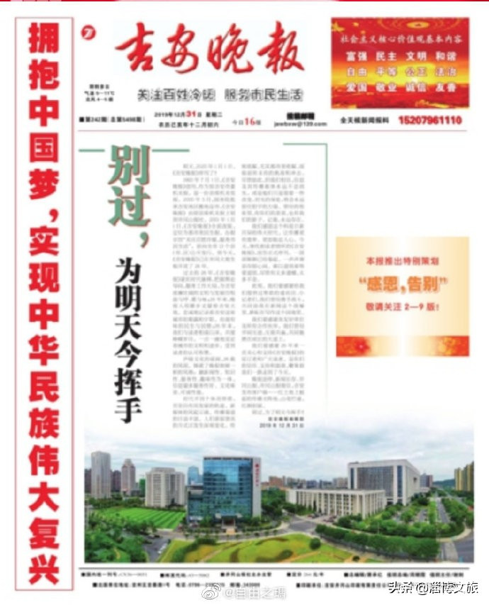 吉安晚報2020年1月1日停刊,向CN36-0051告別,向忠實的讀者告別,向支持的作者告別,向關心的領導告別,向身旁的同事告別。從1993年創刊起,26年來,我們晚報人始終懷抱“關心百姓冷暖,服務市民生活”的初心,篳路藍縷,以啓山林,櫛風沐雨,開拓創新。