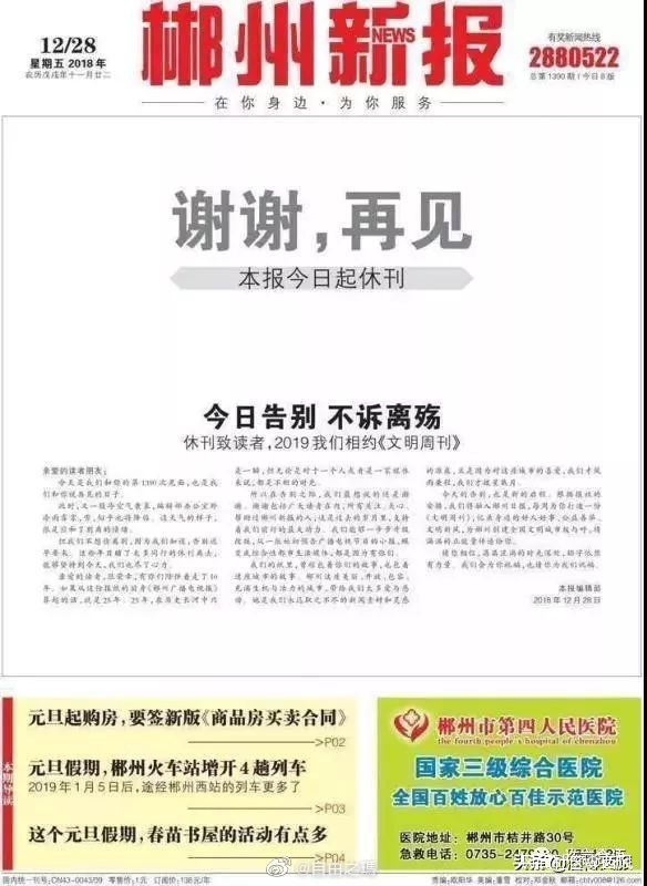四川《遂寧廣播電視報》2020 年 12 月 30 日休刊;