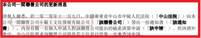2020年11月,全國企業破產重整案件信息網公告,小霸王文化被申請破產清算。目前,中國執行信息公開網顯示小霸王文化有超過50條執行信息。