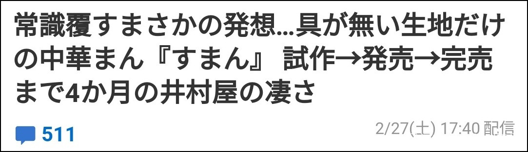 報道稱,去年11月,井村屋正式對外發售這款包子,並命名為“すまん”(素饅,日本人將包子稱之為“饅”;對不起),既指沒有餡料的包子,也取因此需要向消費者表示抱歉的意思,一語雙關。