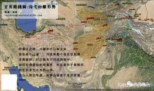 最後説下“轉北而東得安息”這個事情。其實公路線已經畫出來了,即沿着阿富汗北部興都庫什山區邊緣、也就是那個“蛋”的邊,坎大哈->迪拉臘姆->信丹德->赫拉特,轉了一個圈圈,畢竟你不可能在興都庫什山脈裏面無障礙的任意通行吧。再結合更北部地區的地理情況,就明白了。