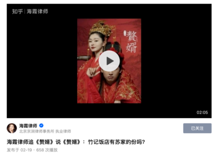 就連司法界也紛紛下場,試圖用《民法典》論證婚前協議如何簽訂才算有效?科學分析論贅婿寧毅能分到蘇氏布行幾成股份?秒變法律科普現場。