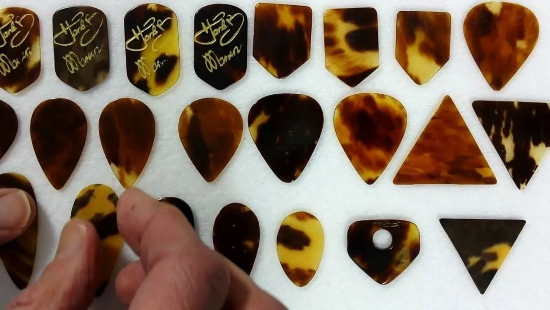 直到19世紀,龜殼逐漸成為製作撥子的首選材料。但是由於傢俱,梳子,裝飾品大量消耗龜甲,導致1973年海龜被列為世界瀕危物種。再加之龜甲撥片易碎且極易磨損,一些有遠見的人們便開始尋求新的代替材料。