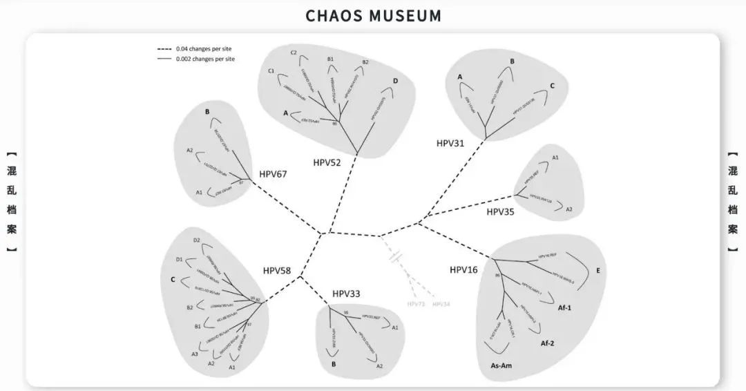 HPV 和人類相伴的歷史非常久遠,甚至比智人與其他古人類產生區分還要久遠。它有 200 餘種亞型,每個亞型又有多個變種,而根據不同的 HPV 推算出的進化樹,也和智人的遷移擴張息息相關。