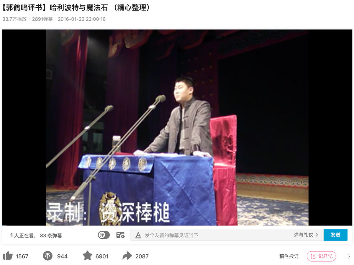 而當娛樂形式更為豐富的互聯網時代,這種讓傳統藝術跟上時代發展的需求,亦變得更為迫切。像前文提到的《哈利·波特》,就因為在中國年輕羣體中擁有相當大的影響力,被多次改編成了評書作品。