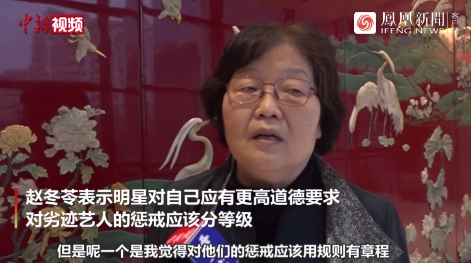 兩會期間,全國人大代表、編劇趙冬苓建議對劣跡藝人的懲戒分等級,針對不同問題有不同懲戒,這也是趙冬苓代表連續第三年提出與“劣跡藝人規範”相關的提案。
