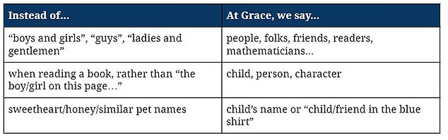 “恩典教會學校”稱這份指南將“消除我們與他人的互動方式中的那些有害的預設。”