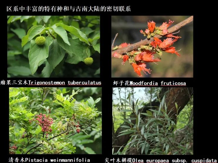 就拿龍腦香科植物來説,西雙版納只有兩種——望天樹和版納青梅,而滇東南不但有望天樹、青梅,還有像東京龍腦香等很多種龍腦香科植物。