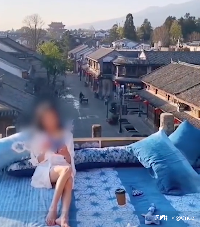 最近,大理古城的地標性建築五華樓的旅拍推廣計劃陷入爭議。有微博網友近日上傳了一張女性躺坐的視頻截圖並質疑,“大理古城五華樓這樣是想宣傳什麼?”