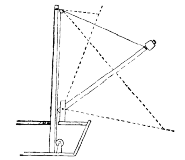 但這個方案與《武經總要》中的圖形不一致,且也不符合《晉書》中關於拍竿結構類似於桔槔的記載。我們的觀點是,晉代書記載的拍竿應該是臨時借用桔槔結構的應急產品,效果並不好,並且官軍採取一定的措施後,杜弢的拍竿就不好使了。也可見那個時期的拍竿威力不大,遠達不到後來記錄中“拍碎”的情況。很有可能隨着人們的使用,逐步採用了類似V字形的拍竿。而桔槔這個形象過於深入人心,而且因此畫工在繪圖時就畫上了這樣一個結構。