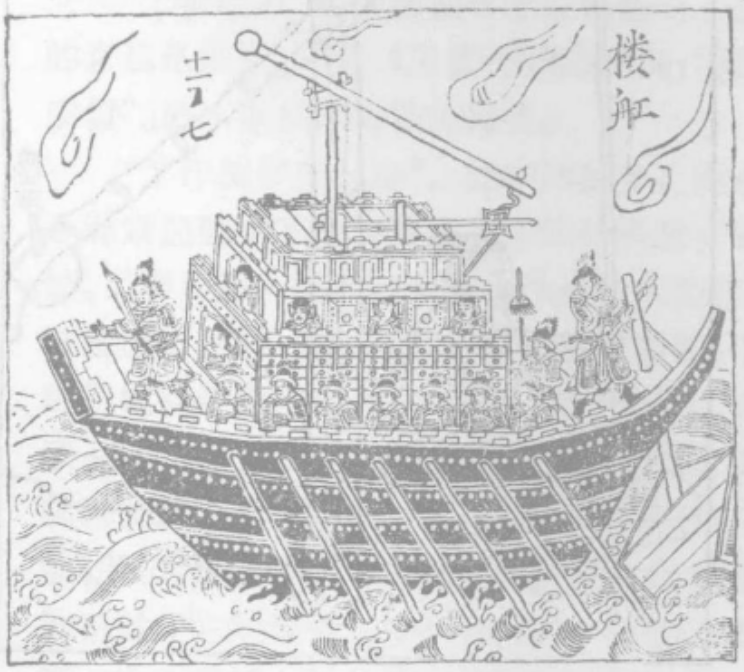 除了上述武器,中國船隻上對於燃燒性火器的配備也很多,例如早期在箭桿上纏上油布點然後射出的“火箭”,採用石油的“猛火油櫃”,火藥誕生後出現的各種拋擲用的燃燒性火器,比如火磚、噴筒等,以及採用火藥推進的“火箭”,例如明代的一窩蜂。特別需要説明的是,兵書中所記載的許多有意思的火器,比如“火龍出水”或者“水地龍王炮”之類,要麼是試驗性火器並未大規模採用,要麼根本不可行,否則古人也不傻,好用的東西還不大量裝備。最後説一種一直裝備的冷兵器就是標槍,可能朋友們比較意外,因為在標槍射程內,其威力大於弓箭,製造難度又很小,所以標槍一直是水師的一種主要消耗性裝備。