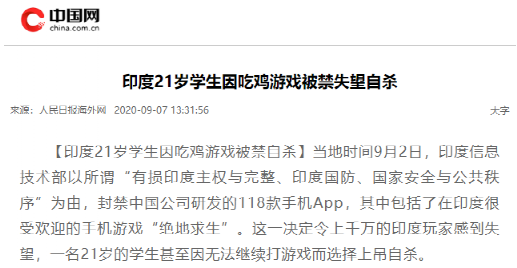 這一下印度的玩家們可都炸了,吃雞手遊在印度已經成了國民手遊,差不多就等於中國的《王者榮耀》,這一禁,印度網友玩啥?甚至有人因此而自殺。