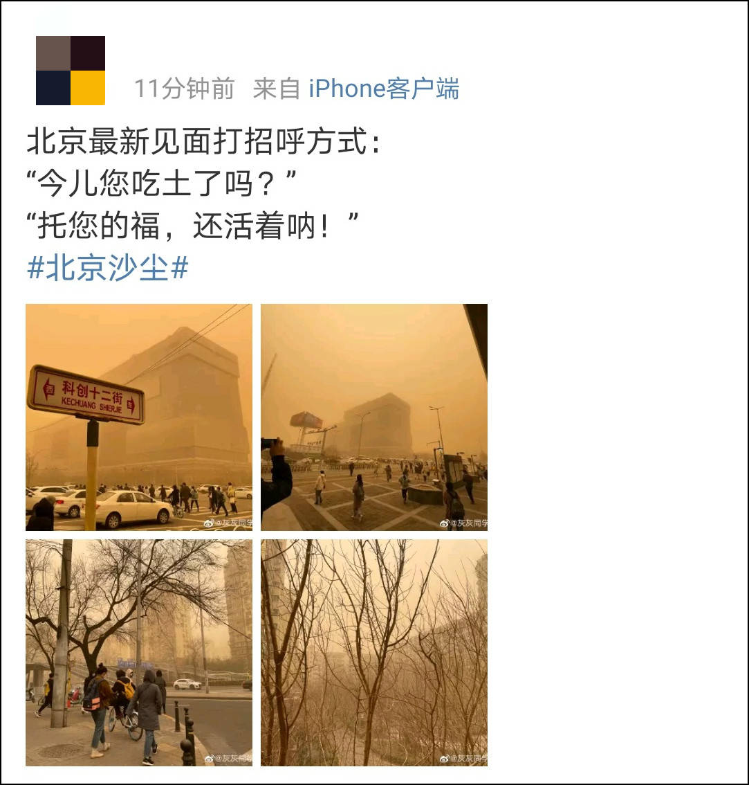 北京沙塵暴“捲土重來”,朋友圈被刷屏了_風聞