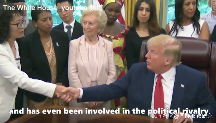 ▲特朗普在白宮接見包括“法 輪 功”信徒在內的所謂異見人士。視頻截圖特朗普當局執政以後,“法 輪 功”積極向其靠攏,甚至參與了美國兩黨的政治角逐,斥巨資為特朗普連任打廣告。